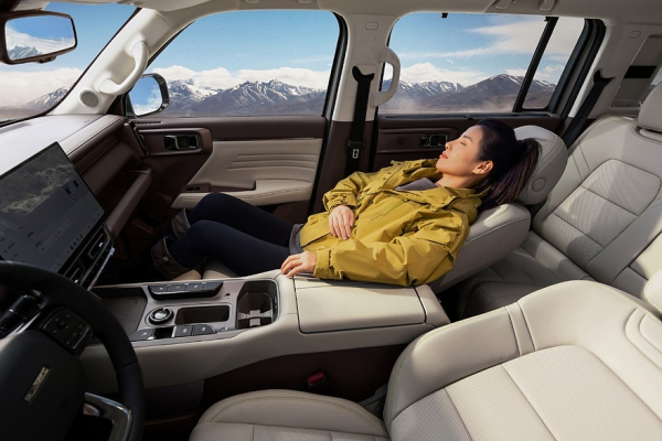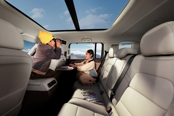 В списке стандартного оборудования модели значатся: панорамный люк, электропривод багажной двери, упомянутые выше экраны и две площадки для беспроводной зарядки, проекционный дисплей, двухзонный климат-контроль, спрятанный в тоннеле бокс с функциями подогрева и охлаждения, видеорегистратор, подогрев и вентиляция всех сидений (передние – еще и с массажером, плюс пассажирское кресло имеет откидную подставку для ног), камеры кругового обзора, адаптивный круиз-контроль, системы автоторможения и удержания в полосе движения. Начиная со второй по старшинству версии появляется функция дистанционной парковки. Топовый Плюс – это также лидар над лобовым стеклом, динамик в подголовнике водительского кресла и встроенный в спинку переднего сиденья столик.