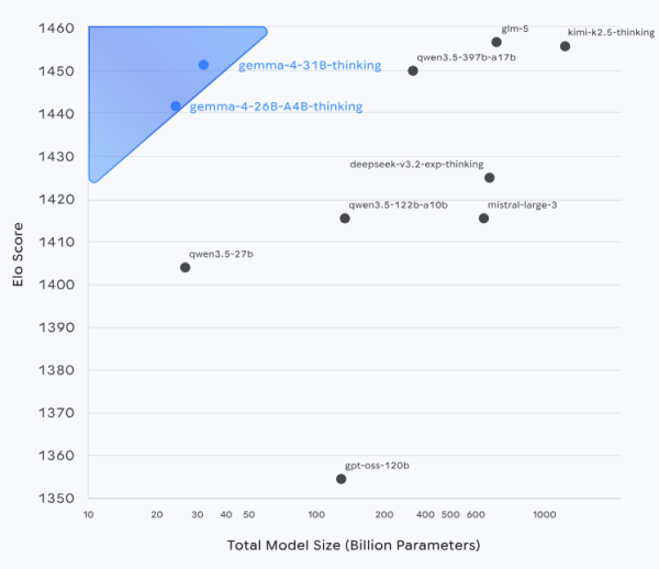Компания Google опубликовала новое семейство больших языковых моделей Gemma 4, основанных на технологиях модели Gemini 3. Gemma 4 распространяется под лицензией Apache в вариантах с 2.3, 4.5, 25.2 и 30.7 миллиардами параметров (E2B, E4B, 31B и 26B A4B). Варианты E2B и E4B подходят для использования на мобильных устройствах, системах интернета вещей (IoT) и платах типа Raspberry Pi, а остальные варианты пригодны для применения на рабочих станциях и системах с потребительскими GPU. Размер учитываемого моделью контекста составляет 128 тысяч токенов для моделей E2B и E4B, и 256 тысяч токенов для моделей 31B и 26B A4B.