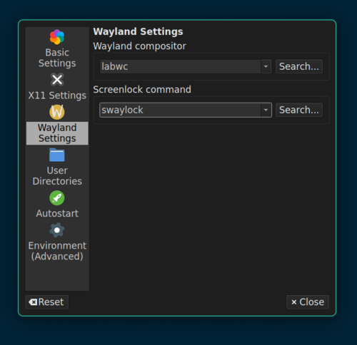 - В LXQt Sessions разделены настройки сеансов на баз X11 и Wayland. Настройки Wayland показываются только при установке пакета lxqt-wayland-session.