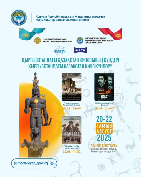 Кинопоказы состоятся с 20 по 22 августа в кинотеатре Ала-Тоо. Зрители смогут посмотреть художественные фильмы известных казахстанских режиссёров, а после сеансов принять участие в обсуждениях с авторами.