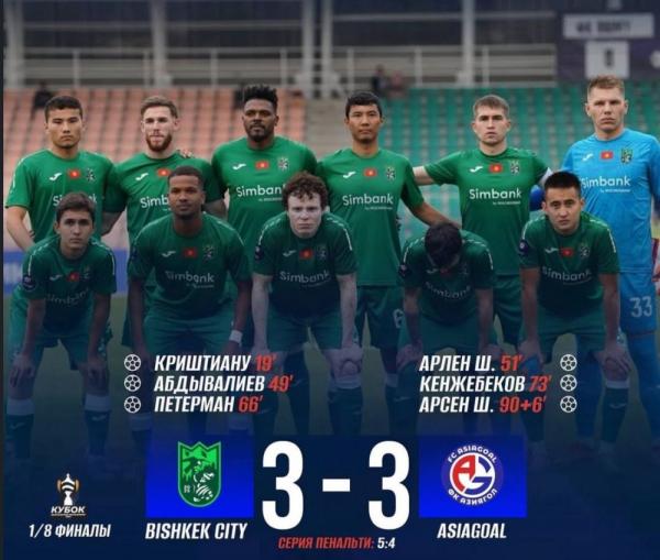 В решающей серии пенальти «Бишкек-Сити» проявил хладнокровие и уверенность, обыграв соперника со счётом 5:4. Таким образом, столичный клуб завоевал путёвку в четвертьфинал Кубка Кыргызстана.