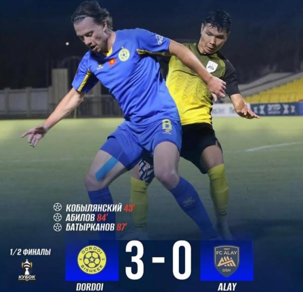 В первом матче Кубка Кыргызской Республики 2025 года столичный футбольный клуб «Дордой» на домашнем стадионе одержал уверенную победу над командой «Алай» со счетом 3:0.