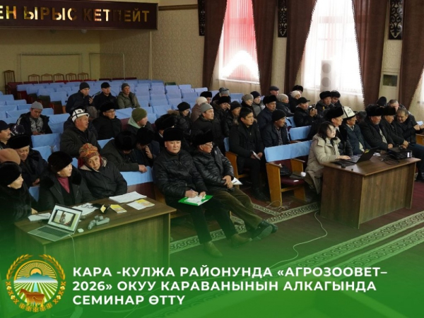 Кара-Кулджинский район принял образовательную эстафету учебного каравана «АгроЗооВет–2026». Обучающий семинар, организованный Министерством водных ресурсов, сельского хозяйства и перерабатывающей промышленности КР, собрал аграриев региона для детального разбора новых технологий и инструментов финансовой помощи.