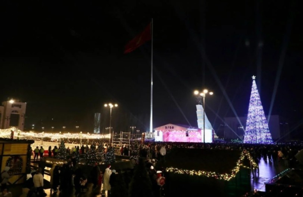 В период новогодних каникул на площади Ала-Тоо стоит главная елка страны. Здесь работают фуд-корт с горячими напитками и уличной едой, а также большой каток под открытым небом. Для детей организованы приемные Аяз-Ата и Санта-Клауса с подарками, а также проводятся шоколадные и пряничные мастер-классы.