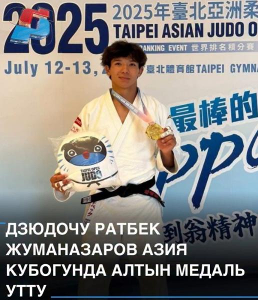 Спортсмен из Кыргызстана Ратбек Жуманазаров выиграл Кубок Азии по дзюдо. Турнир прошёл 12-13 июля в Тайбэе (Китай) в весовой категории до 81 кг, где соревновались 23 участника.