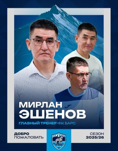 Футбольный клуб «Барс» из Каракола объявил о назначении Мирлана Эшенова на пост главного тренера. Официальное сообщение опубликовано на странице клуба в Instagram. Контракт с новым наставником рассчитан до конца 2025 года.