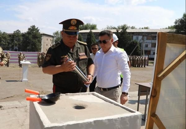 Как сообщает пресс-служба Минобороны КР, в военном городке Военного института ВС КР состоялась церемония закладки капсулы строительства служебного жилого дома для военнослужащих.