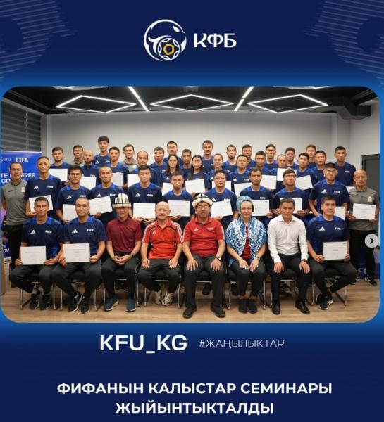 В офисе Кыргызского футбольного союза (КФС) завершился пятидневный международный семинар для арбитров категории МА FIFA. В обучении приняли участие 35 судей и 25 инспекторов из разных регионов Кыргызстана.