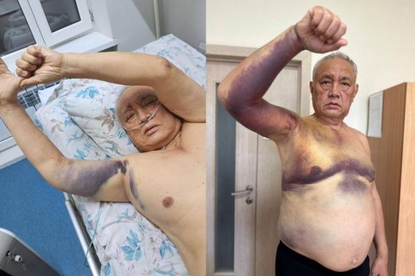 Экс-депутат Султанбай Айжигитов снова в центре внимания. И не потому, что предложил что-то полезное — наоборот. На этот раз он снова обвинил сотрудников ГКНБ в пытках и покушении на его жизнь, так сказать, с новой доказательной базой. Заявление сопровождалось свежей порцией фотографий, где он демонстрирует синяки, якобы оставленные силовиками 1 мая. Причем снимки словно из серии «до и после»: если на фото от 1 мая синяки были скромно сосредоточены на одной руке, то к 5 мая ими щедро усыпан весь торс. Магия? Или мастер-класс по самоэффектам от бывшего сотрудника советских спецслужб?