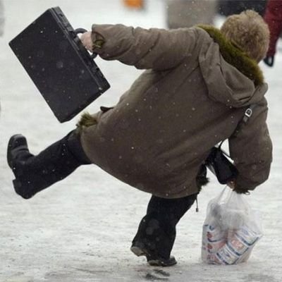 Специалисты рекомендуют двигаться медленно, смотреть под ноги, а при необходимости останавливаться, чтобы оценить обстановку. Ноги следует держать немного согнутыми, корпус слегка наклонённым вперёд. Опасно держать руки в карманах: при падении это снижает шансы сохранить равновесие. Пожилым людям советуют использовать трость с резиновой набойкой.