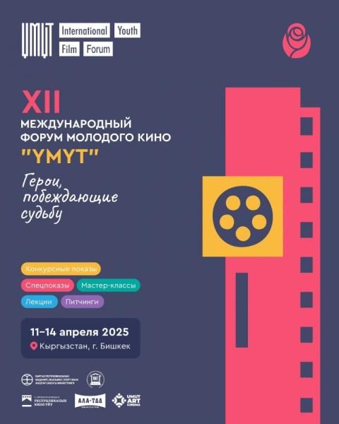 С 11 по 14 апреля 2025 года в Бишкеке пройдет XII Международный Форум молодого кино «Умут». Мероприятие направлено на поддержку творчества молодых кинематографистов и содействие их профессиональному росту. Форум проводится при поддержке Департамента кинематографии при Министерстве культуры, информации, спорта и молодежной политики Кыргызской Республики, а также Межгосударственного фонда гуманитарного сотрудничества государств – участников СНГ.