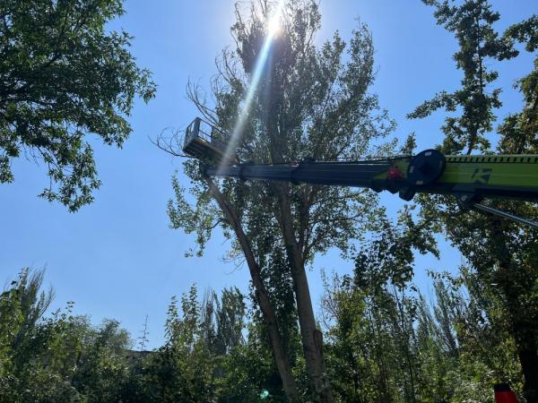 В рамках плановых работ по озеленению города Бишкек сотрудники муниципального предприятия «Бишкекзеленстрой» проводят обрезку и удаление аварийных, сухих деревьев на территории столицы. Об этом сообщает пресс-служба столичной мэрии.