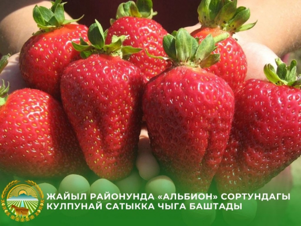 В Жайылском районе официально стартовал ягодный сезон: на прилавках местных рынков появилась первая клубника, выращенная отечественными производителями. В текущем году основной объем ранней продукции представлен сортом «Альбион», который поставляют фермерские хозяйства Жайылского и Панфиловского районов.