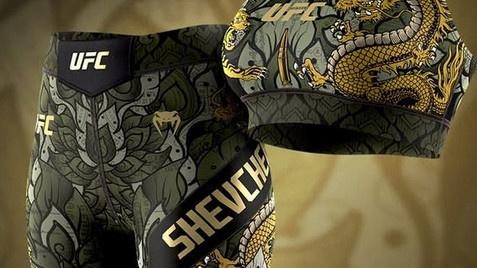 Экипировка была создана в сотрудничестве с партнерами UFC и имеет уникальный дизайн, который подчеркивает силу и мощь спортсменки. На костюме изображены тигр и дракон, символизирующие бойцовский дух Шевченко, а между ними красуется пуля, что является отсылкой к ее прозвищу — «Bullet». На фоне этих мощных символов виднеется огонь, напоминающий листву, что может олицетворять неукротимую силу и страсть, с которыми Валентина выходит на бой.