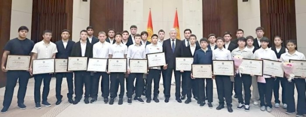 В Бишкеке прошла церемония награждения юных борцов Кыргызстана, победивших на чемпионате Азии по греко-римской, вольной и женской борьбе среди спортсменов до 15 и 20 лет. Сертификаты призерам вручил Председатель Кабинета Министров КР Адылбек Касымалиев от имени Президента страны.