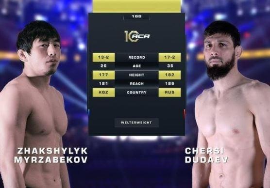 В главном событии вечера Мырзабеков встретился с Черси Дудаевым — вторым номером полусреднего дивизиона ACA. Поединок завершился в третьем раунде техническим нокаутом в пользу кыргызстанца.