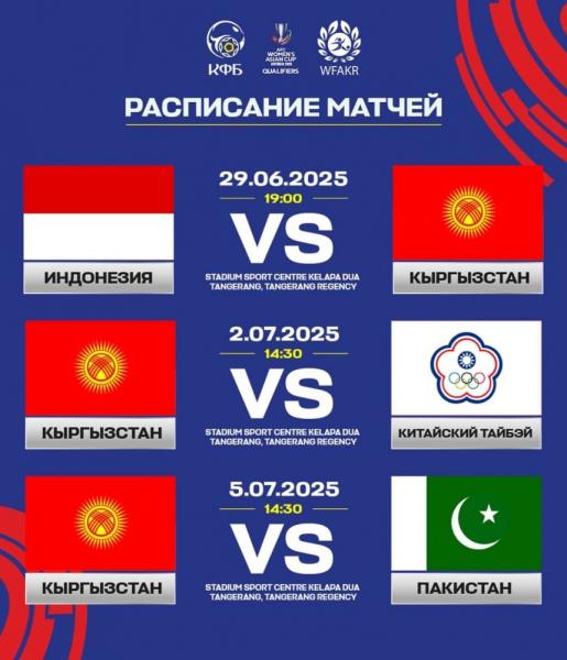 С 29 июня по 6 июля 2025 года национальная женская сборная Кыргызстана по футболу проведет важные матчи в отборочном раунде Кубка Азии — 2026. Команда оказалась в группе «C», где встретится с соперницами из Индонезии, Китайского Тайбэя и Пакистана.