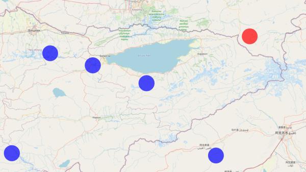 Очаг землетрясения располагается в 25 км к северо-востоку от села Каркыра и в 95 км к северо-востоку от города Каракол.
