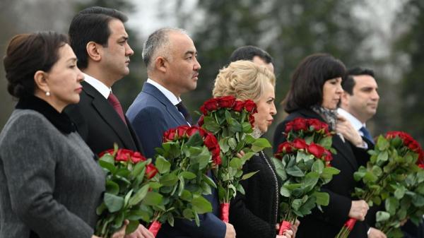 Төрага ЖК Нурланбек Тургунбек уулу и депутаты вместе с коллегами из межпарламентской ассамблеи государств-участников Содружества Независимых Государств почтили память погибших в Великой Отечественной войне, возложили цветы к мемориальной доске, посвященной кыргызским воинам.