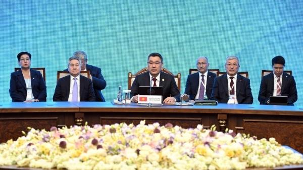 «Сегодня мы проводим первое заседание Совета глав государств Содружества Независимых Государств в рамках председательства Кыргызской Республики в текущем году. Пользуясь случаем, в первую очередь хочу поблагодарить сопредседателей Республику Казахстан и Российскую Федерацию за плодотворную работу и поддержку в период председательства Кыргызской Республики в органах СНГ.