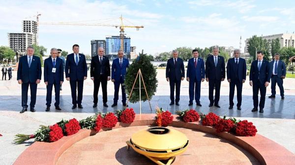 Как сообщила пресс-служба парламента, спикер ЖК Нурланбек Тургунбек уулу, председатель Государственной Думы Федерального собрания России Вячеслав Володин, председатель Мажилиса парламента Казахстана Ерлан Кошанов, председатель Маджлиси намояндагон Маджлиси Оли Таджикистана Файзали Идизода, председатель Палаты представителей Национального собрания Беларуси Игорь Сергеенко почтили память героев в Великой Отечественной Войне.