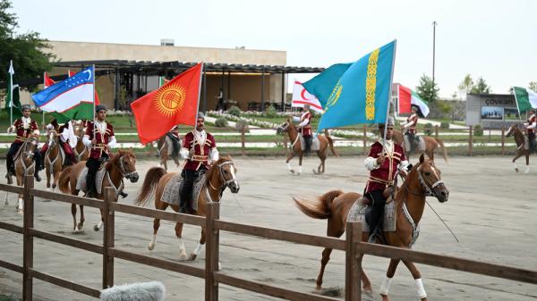 В начале выступления всадники торжественно вынесли флаги государств – членов Организации экономического сотрудничества.