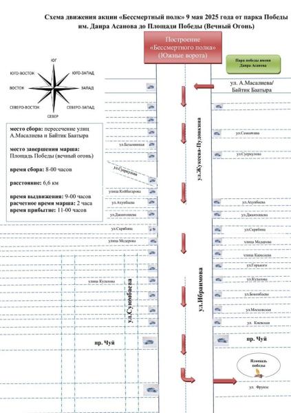 В 2025 году 9 мая в 9:00 в городе Бишкек начнет свое движение военно-патриотическая акция «Бессмертный полк» в рамках 80-летия Победы в ВОВ.