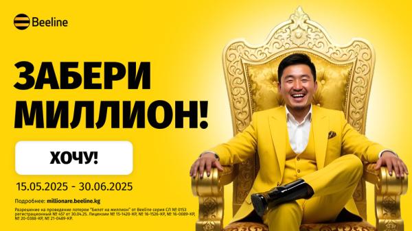 Хотите воплотить мечту в реальность? С Beeline это возможно! Сотовый оператор объявил о старте масштабной лотереи «Билет на миллион». Это уникальная возможность получить один из 33 денежных выигрышей, включая главный приз — 1 000 000 сомов.