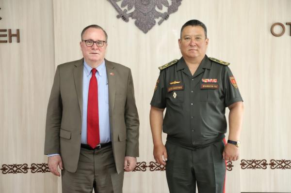 В Министерстве обороны Кыргызской Республики состоялась встреча министра обороны Кыргызской Республики генерал-майора Руслана Мукамбетова с Чрезвычайным и Полномочным послом Соединенных Штатов Америки в Кыргызской Республике Лесли Вигери.