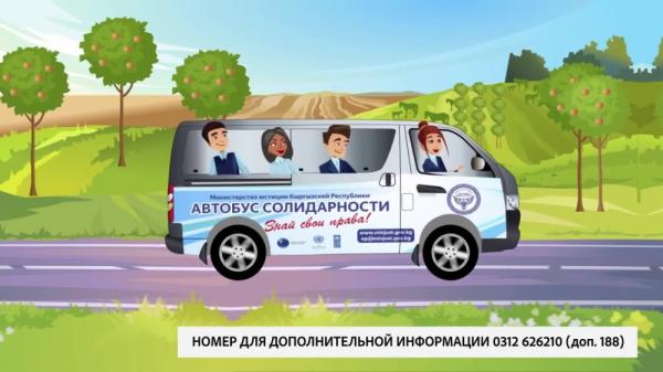 Министерство юстиции Кыргызской Республики в партнерстве с ПРООН делает еще один шаг к обеспечению инклюзивного и справедливого доступа к правосудию для всех. Ранее ведомство получило от ПРООН новый микроавтобус для расширения инициативы «Автобус солидарности», мобильной службы юридической помощи, предоставляющей бесплатную юридическую поддержку жителям отдаленных районов.