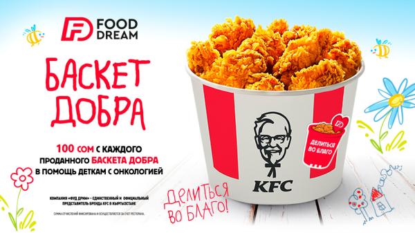 Кампания «Баскет Добра» проходила с 1 апреля по 31 мая 2025 года во всех ресторанах KFC в Бишкеке, Чуйской области и городе Ош. За это время тысячи гостей поддержали проект, выбрав обед, который помогает спасать жизни.