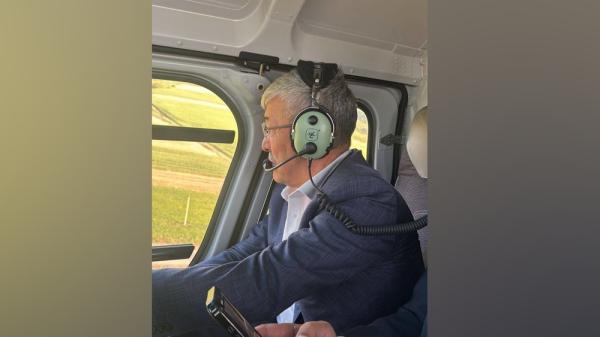Глава Кабинета министров Адылбек Касымалиев и министр чрезвычайных ситуаций Бообек Ажикеев облетели участок, где произошло ЧП.