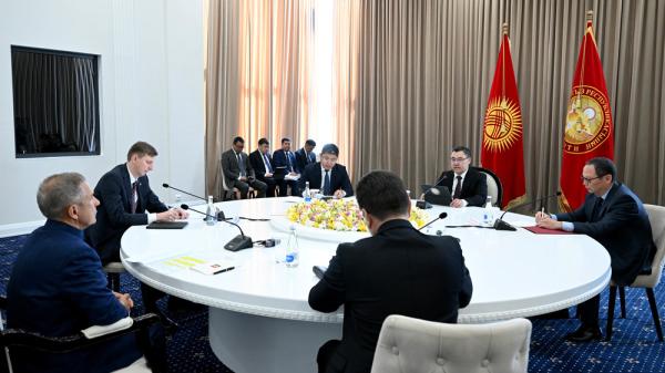 Жапаров приветствовал Минниханова, отметив динамичное развитие и укрепление сотрудничества Кыргызстана и Татарстана в духе кыргызско-российского стратегического партнёрства.