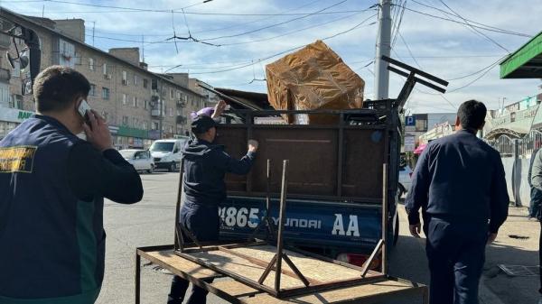 Как сообщила пресс-служба мэрии, рейд провели Ленинский акимиат совместно с сотрудниками Управления по контролю за землепользованием, Муниципальной инспекции, УВД, ГУ «Бишкекглавархитектура», МТУ, ДУМИ и МП «Тазалык».