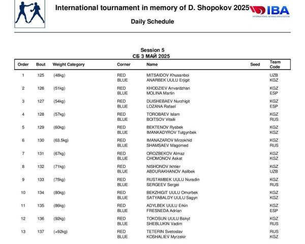 В финал вышли 16 спортсменов из Кыргызстана, а также представители Испании, России и Узбекистана.