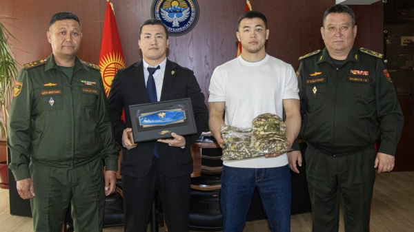 В Бишкеке 9 апреля состоялась встреча министра обороны Руслана Мукамбетова с призёром Олимпийских и Азиатских игр, борцом греко-римского стиля Акжолом Махмудовым. Об этом сообщили в пресс-службе Минобороны.
