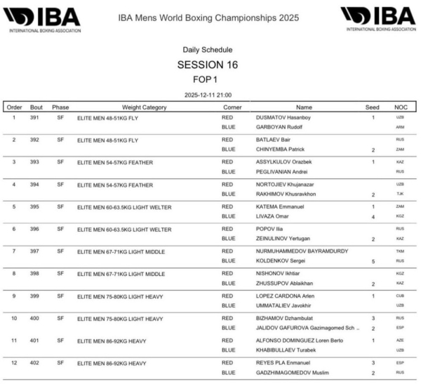 В рамках чемпионата мира по боксу в ОАЭ сегодня, 11 декабря, пройдут полуфинальные поединки.
