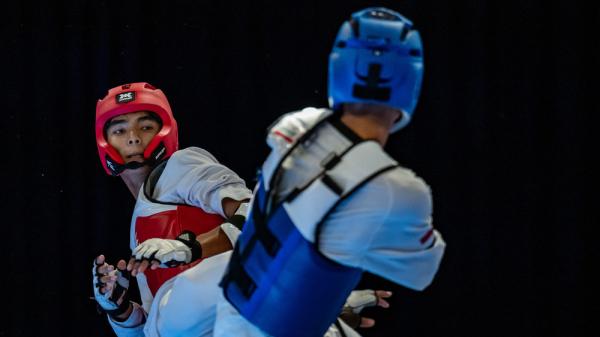 Фото — Выступление тхэквондиста Нурхан Самидинов, который завоевал бронзу Всемирной летней Универсиады