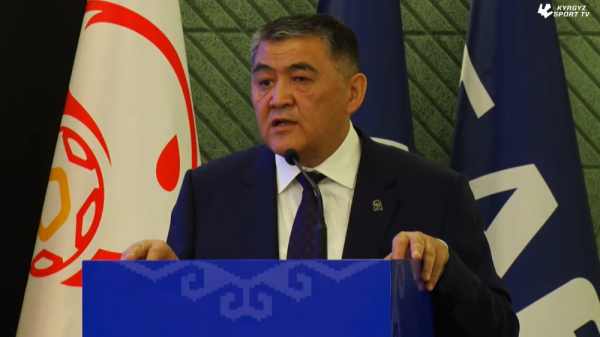 Большую часть своего обращения Камчыбек Ташиев посвятил благодарности президенту Садыру Жапарову за поддержку футбола в стране.