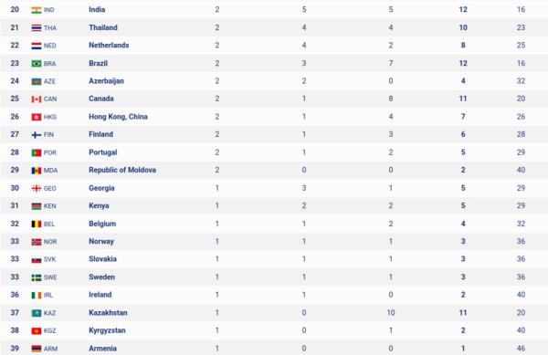 Спортсмены из Кыргызстана смогли завоевать две медали — Денис Петрашов выиграл золото на дистанции 100 метров брассом, а Нурхан Самидинов завоевал бронзовую медаль по таэквондо.