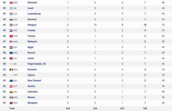 Всего же спортсмены из 58 стран смогли завоевать медали на этих стартах.