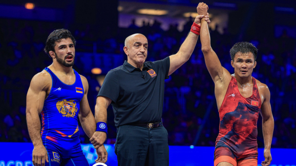 15 сентября Бекзат Алмаз уулу проведет финальную схватку в весовой категории до 57 кг против спортсмена из КНДР.