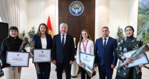Председатель Кабинета министров Адылбек Касымалиев встретился с чемпионкой мира по художественной гимнастике среди юниоров Златой Аркатовой и её тренерами. Чемпионат мира прошел в городе София (Болгария). Глава Кабмина отметил, что победа Златы Аркатовой на чемпионате мира по художественной гимнастике — это историческое достижение, ведь Кыргызстан впервые достиг столь высокого уровня в художественной гимнастике. «Ты прославила Кыргызстан на весь мир, был ...