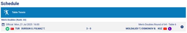 Сборная Кыргызстана по настольному теннису завершила выступление на Всемирной летней Универсиаде в Германии.