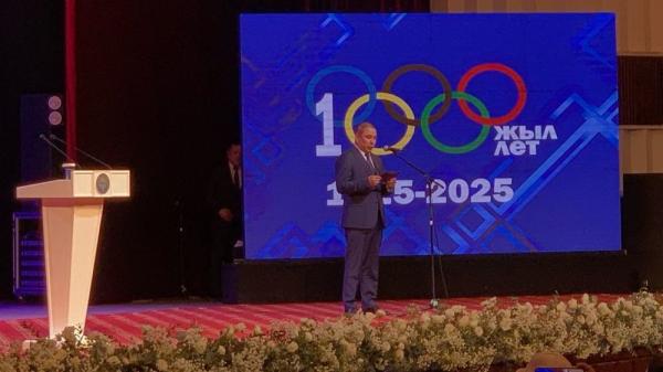 На мероприятии, посвящённом 100-летию кыргызского спорта, глава Кабмина Адылбек Касымалиев и вице-спикер Жогорку Кенеша Нурбек Сыдыгалиев наградили почётными грамотами деятелей спорта Кыргызстана.