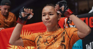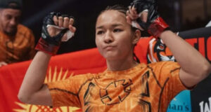 Кыргызстанская спортсменка Фарида Абдуева (6-1) провела успешную первую защиту чемпионского титула в минимальном весе лиги OCTAGON. Бой состоялся 8 ноября на турнире OCTAGON 81 в Алматы. Соперницей 21-летней чемпионки стала бразильская боец Силвания Монтейра (11-4). Поединок завершился уже в первом раунде: Абдуева одержала победу техническим нокаутом на последней секунде тайма, продемонстрировав уверенное доминирование и высокий уровень подготовки. Для кыргызстанки это ...