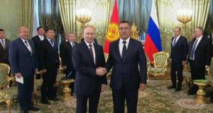 «Мы очень рады возможности в рамках вашего рабочего визита посмотреть на все составляющие наших отношений», — обратился президент России Владимир Путин на встрече с президентом КР Садыром Жапаровым в Кремле. Путин остановился на отношениях в экономической сфере и сказал, что стороны добиваются нужных результатов. «Мы уделяем должное внимание и гуманитарной составляющей нашего взаимодействия. Прежде всего речь идёт об образовании. В ...