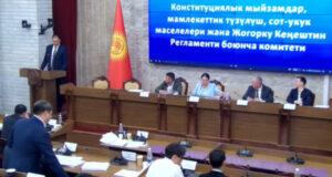 Комитет Жогорку Кенеша по конституционному законодательству 17 июня принял в третьем чтении проект закона «О внесении изменения в Гражданский процессуальный кодекс». Проект закона разработан в целях устранения пробелов в гражданском процессуальном законодательстве относительно вопроса обжалования решений судов аксакалов. Задачей законопроекта является определение процедуры обжалования решения судов аксакалов в суде. Описательная часть: В соответствии со статьей 35 закона «О судах аксакалов» ...