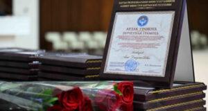 В Администрации президента 2 июня состоялась торжественная церемония вручения государственных наград и почётных грамот Кабинета министров. Как сообщила пресс-служба Кабмина, председатель Кабинета министров Адылбек Касымалиев вручил государственные награды военнослужащим-пограничникам, проявившим мужество, стойкость и самоотверженность при исполнении воинского и служебного долга, а также за защиту суверенитета и территориальной целостности Кыргызской Республики. Затем он вручил почётные грамоты Кабинета Министров гражданам, внесшим вклад ...