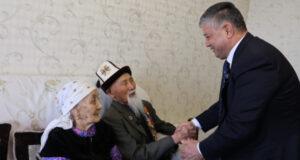 В преддверии Дня Победы министр труда, социального обеспечения и миграции Равшанбек Сабиров совместно с акимом Октябрьского района Жаныбеком Орозалиевым поздравили участника Великой Отечественной войны и жительницу блокадного Ленинграда. Как сообщила пресс-служба Минтруда, Сабиров посетил ветерана ВОВ Аспека Джумашева, проживающего в Бишкеке. Аспек Джумашев родился 17 сентября 1924 года и в сентябре 1942 года был призван на фронт из села Кызыл-Берлик ...